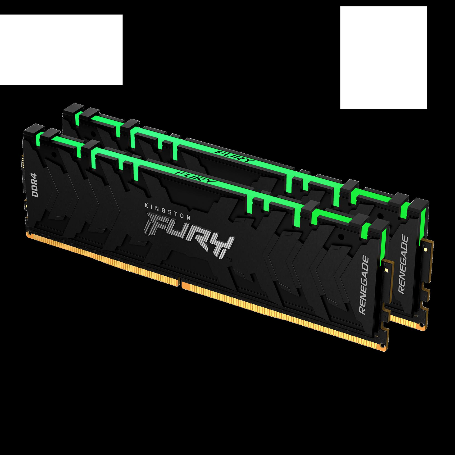 Der ultraschnelle Kingston FURY Renegade DDR4 RGB ist das perfekte Upgrade für alle Gamer, die sich Topleistung und schicken RGB-Style für ihr AMD- oder Intel-basiertes System wünschen. Die dynamischen RGB-Beleuchtungseffekte nutzen die zum Patent angemeldete Infrared Sync Technology von Kingston FURY für geschmeidige, synchronisierte Beleuchtungseffekte. Pimpe deine Framerate, verbessere deine Broadcasts und mach aus Highlight Reel Clipping ein Kinderspiel, dank Geschwindigkeiten bis 4600 MHz gepaart mit minimalen CL15-CL19 Latenzen. Mit dem aggressiven, stylischen schwarzen Kühlkörper mit optisch passender schwarzer Platine ist dir der Sieg so gut wie sicher und deine Gegner schlägst du in die Flucht.Renegade DDR4 RGB ist Intel XMP-zertifiziert mit Profilen, die für die neuesten Chips von Intel ausgelegt sind. Wähle einfach das voreingestellte Profil im BIOS aus und schon kann\'s losgehen. Mit lebenslanger Garantie und über 30 Jahren Erfahrung ist der zuverlässige Renegade DDR4 RGB werkseitig zu 100 Prozent auf Geschwindigkeit geprüft und sorgt für extreme Leistung, einen atemberaubenden Style und maximale Sicherheit.