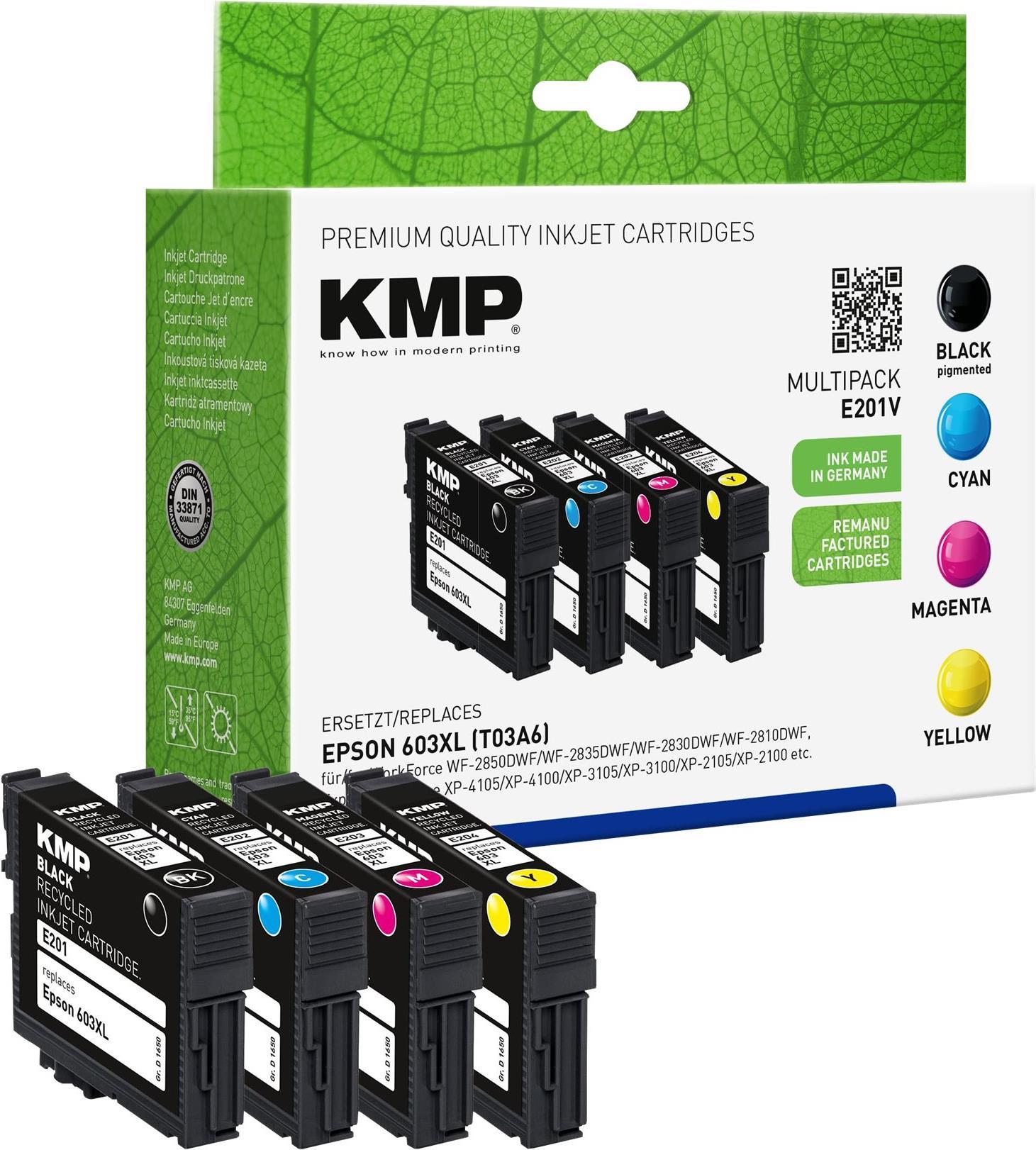 KMP MULTIPACK E201V - 4er-Pack - Schwarz, Gelb, Cyan, Magenta - kompatibel - Tintenpatrone (Alternative zu: Epson 603XL) |