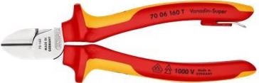 | Funktionen | Geschmiedet, induktionsgehärtete Schneidkanten, Plastiküberzogene Griffe, präzise Schneidspitzen, bis zu 1.000 V Isolierung, 3 mm medium hard wire cutting, 2 mm hard wire cutting, 4 mm soft wire cutting, ölgehärtet, 62 HRC Härte, schlanke Kopfform, Mehrkomponenten-Griffe, integrated insulated tether attachment point |
