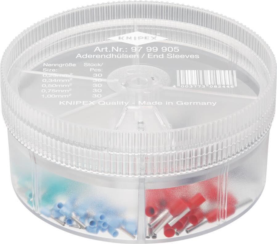 Knipex 97 99 905 Aderendhülsen-Sortiment Vollisoliert Blau, Türkis, Weiß, Schwarz, Rot 150 St.
