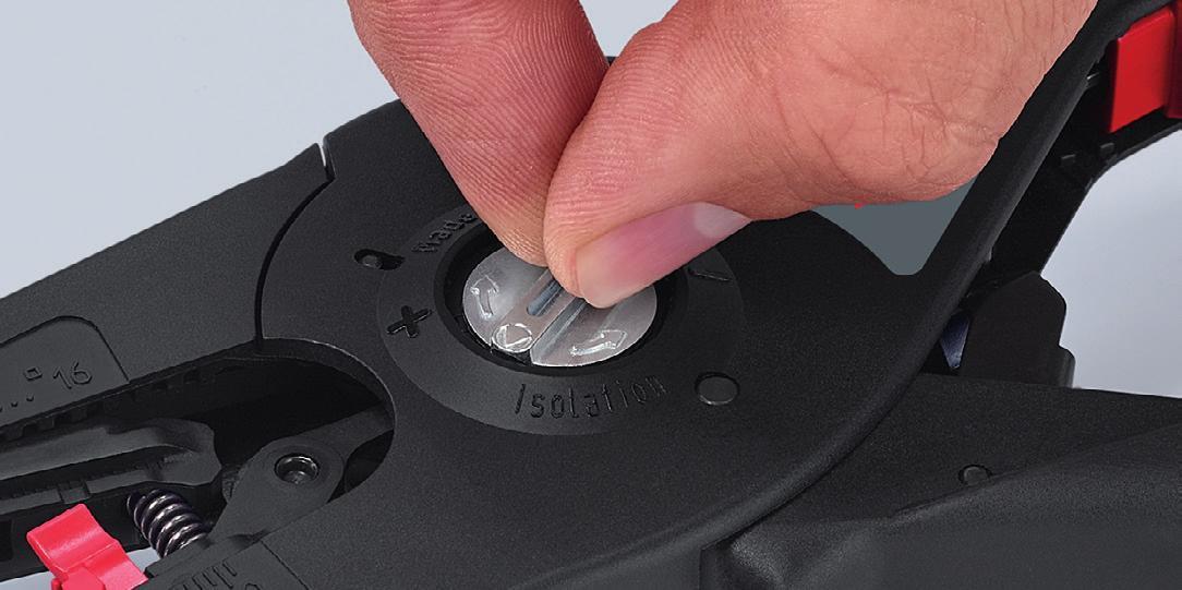 Einfaches, präzises Abisolieren von feindrähtigen bis massiven Rundkabeln im großen Kapazitätsbereich von 0,08 bis 16 mm² mit nur einer Zange Guter Grip dank halbrunder Metall-Haltebacken mit Kammprofil; exakter Schnitt dank parabelförmiger Abisoliermesser Feinjustierung ermöglicht die genaue Einstellung der Messer auf spezielle Materialien oder Temperaturbedingungen