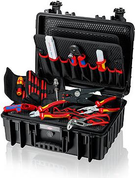 - Bestückt mit 25 Markenwerkzeugen, teilweise VDE-geprüft nach DIN EN 60900