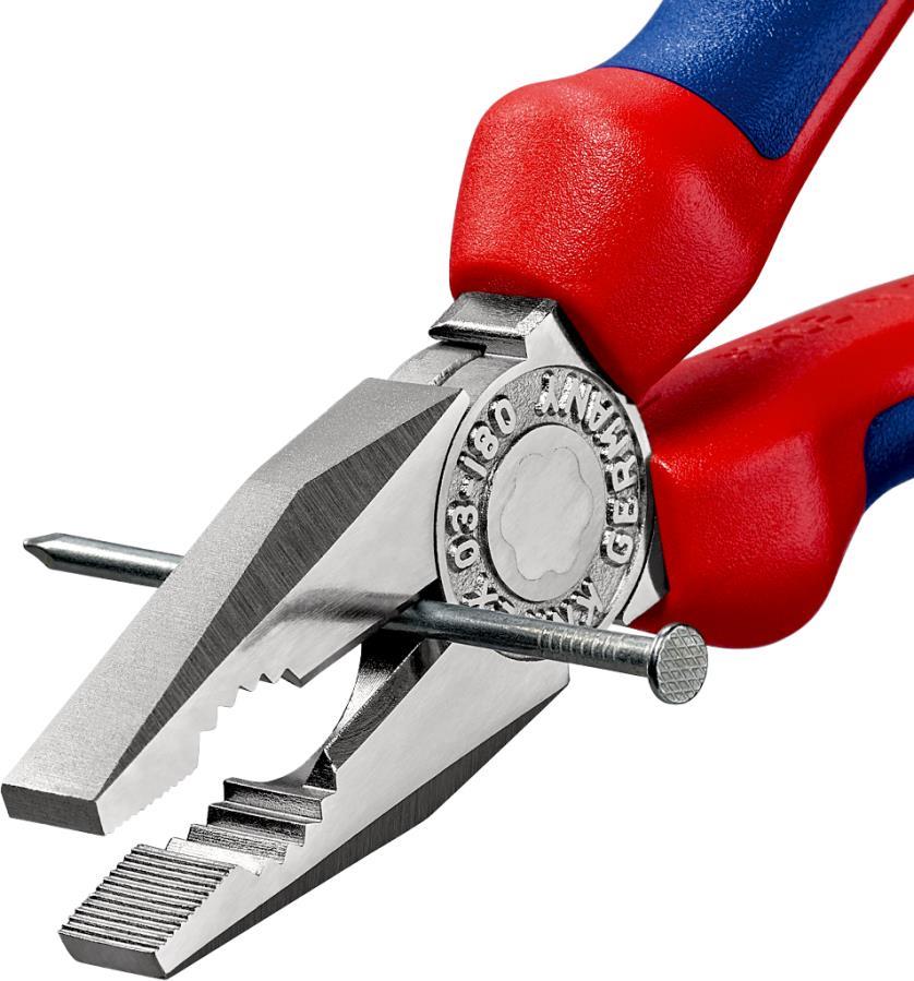 Mit Greifzonen für Flach- und Rundmaterial für vielseitigen Einsatz Mit Schneiden für weichen und harten Draht Lange Schneiden für dickere Kabel Schneiden zusätzlich induktiv gehärtet, Schneidenhärte ca. 60 HRC Spezial-Werkzeugstahl, in Öl gehärtet und angelassen Kopf: verchromt Griffe: mit zweifarbigen Mehrkomponenten-Griffhüllen |