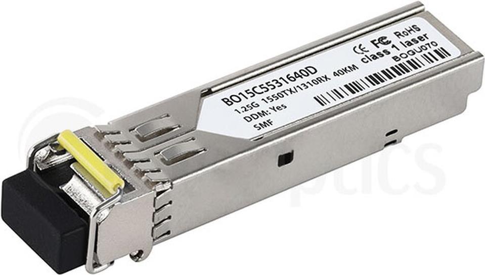 Die BlueOptics BO15C5531640D Bidi SFP Transceiver haben eine kombinierte Empfangs- (Receiver) und Sendefunktion (Transmitter) über einen einzigen Laser (BOSA) für die Übermittlung optischer Signale via Singlemode Glasfaser. Dies erfolgt unter Berücksichtigung des jeweiligen Gigabit Protokolls, wie z.B. dem GB Ethernet Standard 802.3z. BlueOptics BO15C5531640D Bidi SFP Module sind für den Einsatz in Switchen, Routern, Storage Systemen und anderer Hardware im dritten optischen Fenster, mit 1310nm und 1550nm, geeignet.