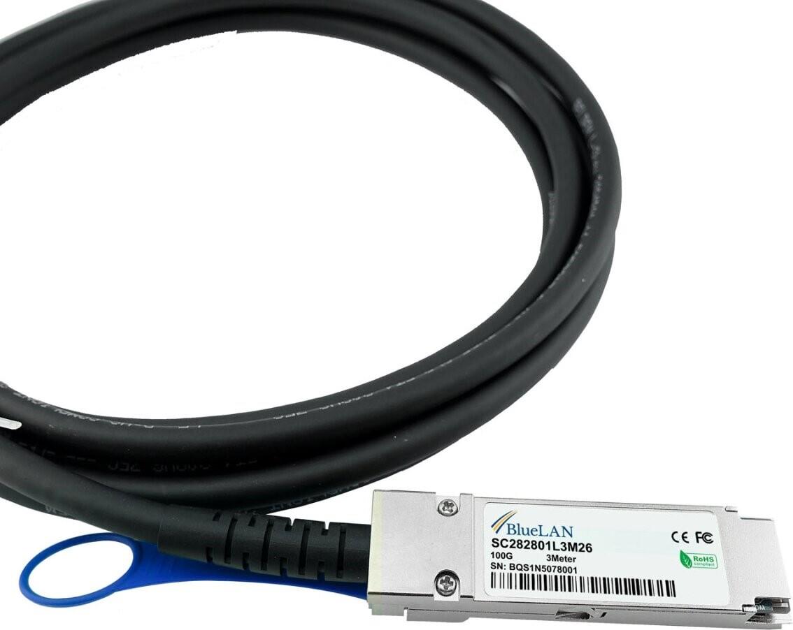 Kompatibles Amphenol NDAAFF-0003 BlueLAN SC282801L3M26 QSFP28 Direct Attach Kabel, 100GBASE-CR4, Infiniband EDR, 26AWG, 3 Meter (NDAAFF-0003-BL)