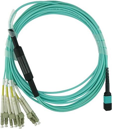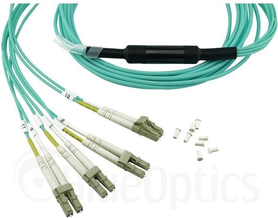 Kompatibles Chelsio OCTCABLE1M-SR BlueOptics LWL Breakout Patchkabel, MPO/UPC, 4xDuplex LC/UPC, 1 Meter, Multimode G50/125µm, OM3, MPO Einfügedämpfung: unter 0.3dB, LC Einfügedämpfung: unter 0.2dB, Markenfaser, 3.0mm LSZH aqua / türkis, 8 Kerne und MPO St (OCTCABLE1M-SR-BO)