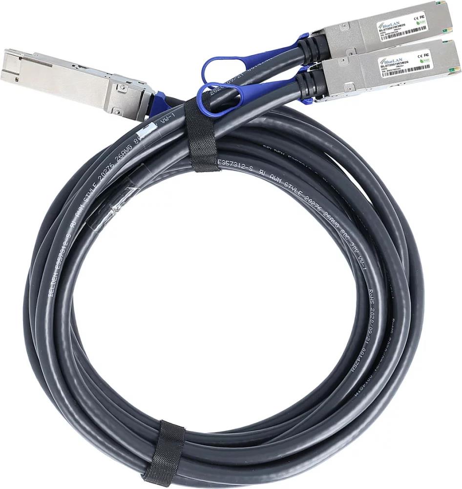 Kompatibles HPE M-Series R8M57-63001 BlueLAN passives 200GBASE-CR4 QSFP56 auf 2x100GBASE-CR2 QSFP56 Direct Attach Breakout Kabel, 2 Meter, AWG26 (R8M57-63001-BL)