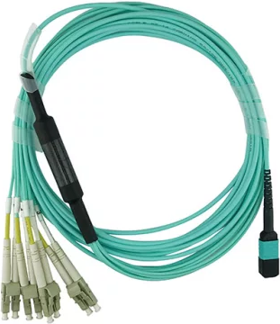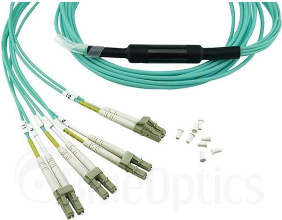 Kompatibles Lenovo A5UA BlueOptics LWL Breakout Patchkabel, MPO/UPC, 4xDuplex LC/UPC, 1 Meter, Multimode G50/125µm, OM3, Markenfaser, 3.0mm LSZH aqua, 8 Kerne und MPO Stecker ohne Pins, inkl. Messprotokoll (A5UA-BO)
