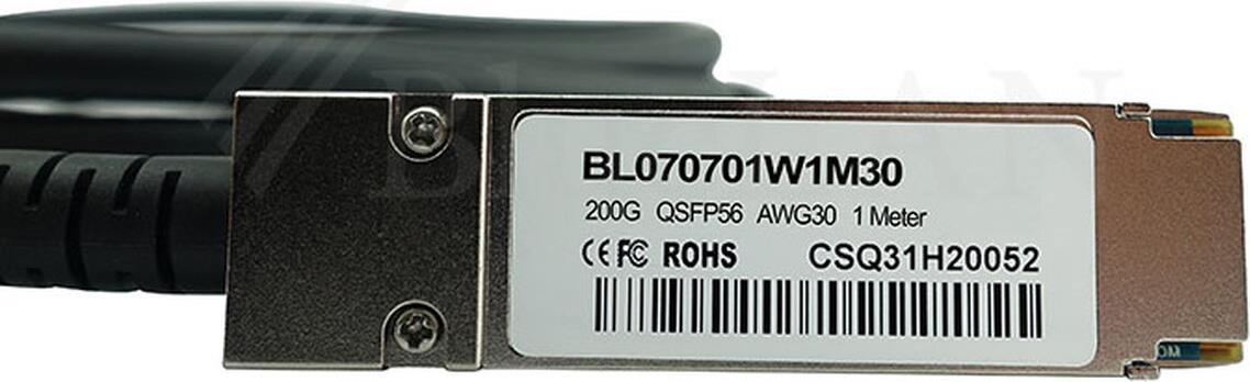 NVIDIA MCP1650-V00AE30 kompatibles Direct Attach Kabel (DAC) als passive 200 Gigabit Twinaxial Kupfer Variante, mit QSFP56 auf QSFP56 Verbindung, für den Anschluss von Hardware in Racks und über benachbarte Racks hinweg. BlueLAN NVIDIA MCP1650-V00AE30 kom