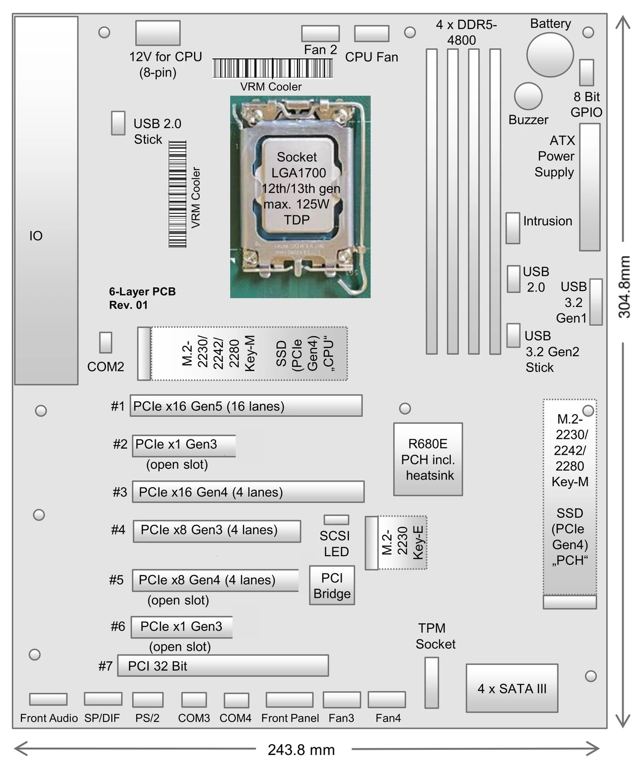 Intel® Core™ i9/i7/i5/i3 (12./13./14. Gen), Pentium®, Celeron® (max. 125W TDP) |