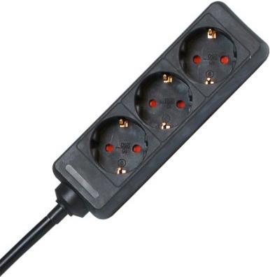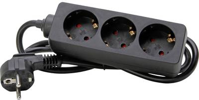 3-fach Steckdosenleiste mit gedrehten Töpfen und erhöhtem Berührungsschutz, 1.4m Zuleitung H05VV-F3G1,5mm², 16A, 250 V~ scchwarz.