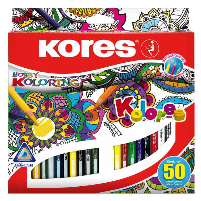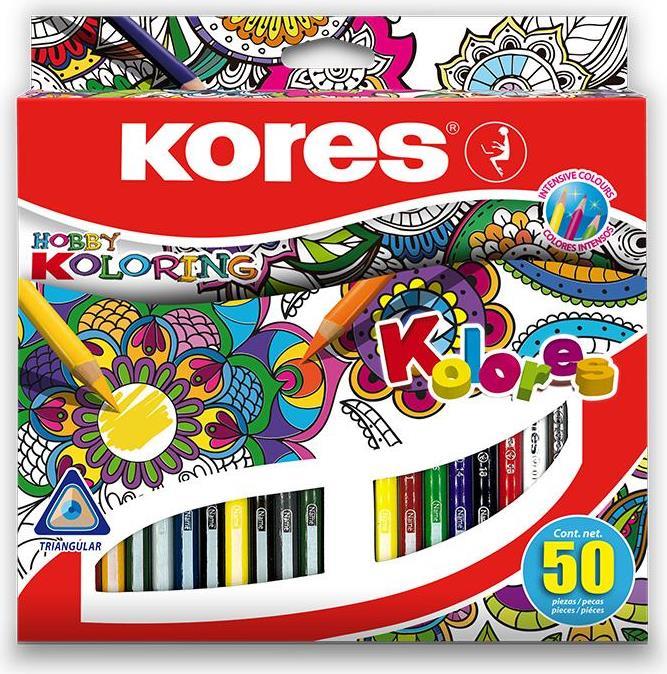 Kores Dreikant-Buntstifte "Hobby Koloring", 50er Karton-Etui weiche Mine für einfaches Malen, hoch-pigmentierte Farben, - 1 Stück (BB93350)