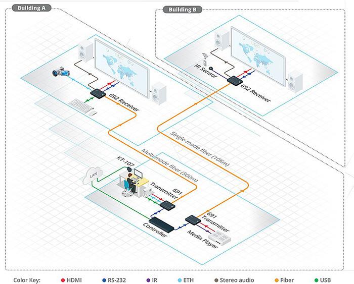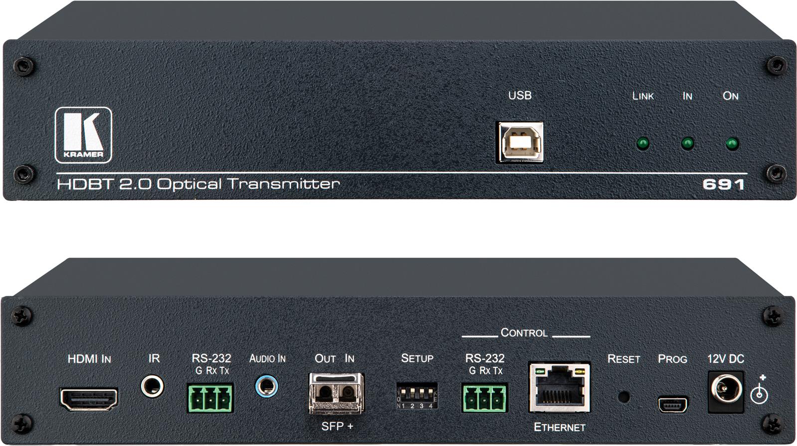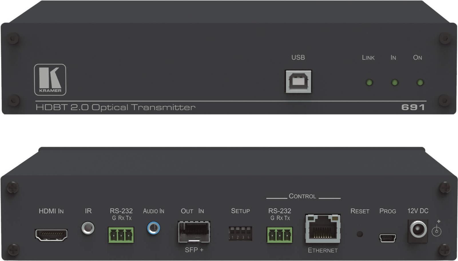 | Produktbeschreibung | Kramer 691 4K60 4:2:0 HDMI MM/SM Fiber Optic Transmitter with USB, Ethernet, RS-232, IR & Stereo Audio over Ultra-Reach HDBaseT 2.0 - Video/Audio/Infrarot/USB/serieller/Netzwerkextender |