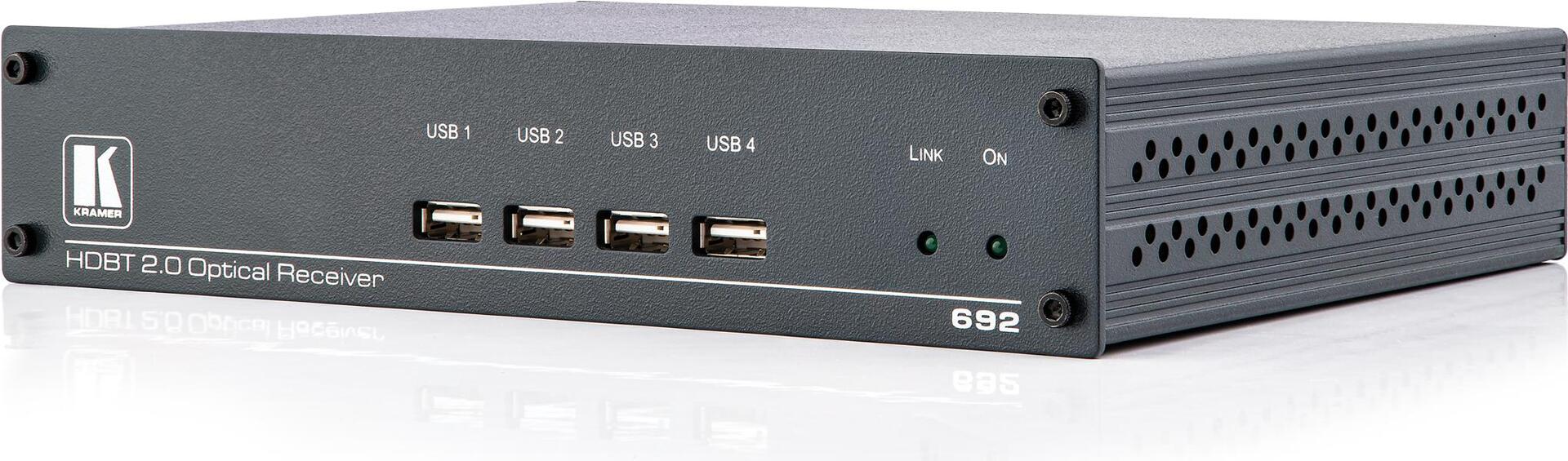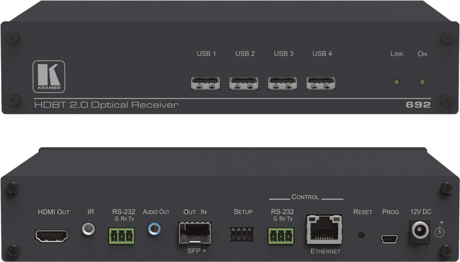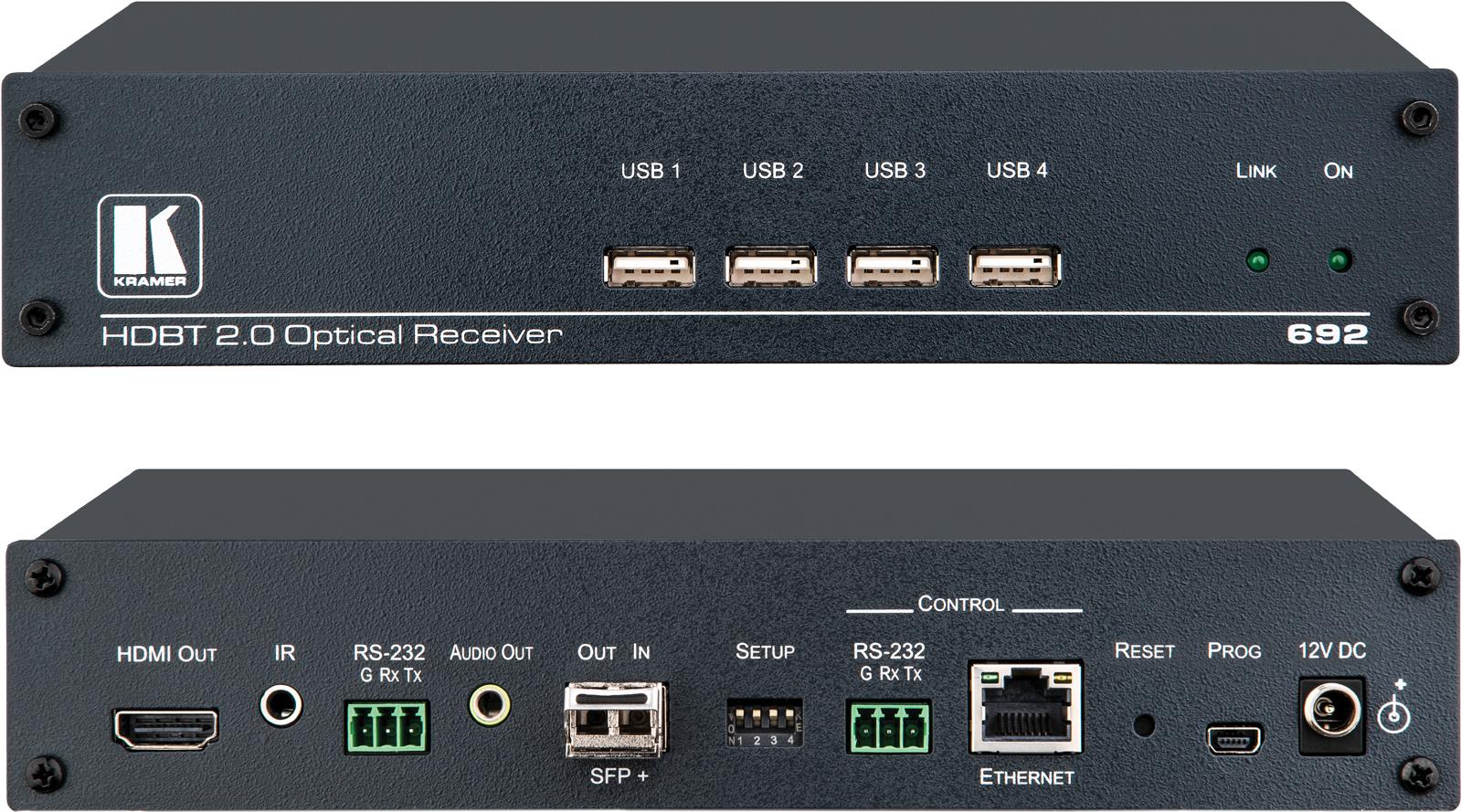 | Produktbeschreibung | Kramer 692 4K60 4:2:0 HDMI MM/SM Fiber Optic Receiver with USB, Ethernet, RS-232, IR & Stereo Audio over Ultra-Reach HDBaseT 2.0 - Video/Audio/Infrarot/USB/serieller/Netzwerkextender |