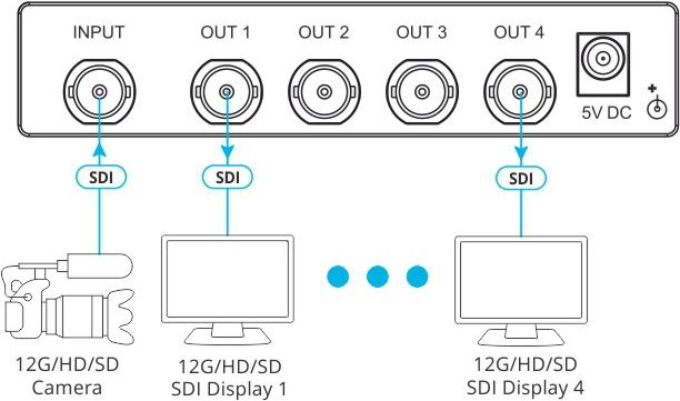 | Terminals | (1) x 12G-SDI-Eingang - BNC (4) x 12G-SDI-Ausgang - BNC |