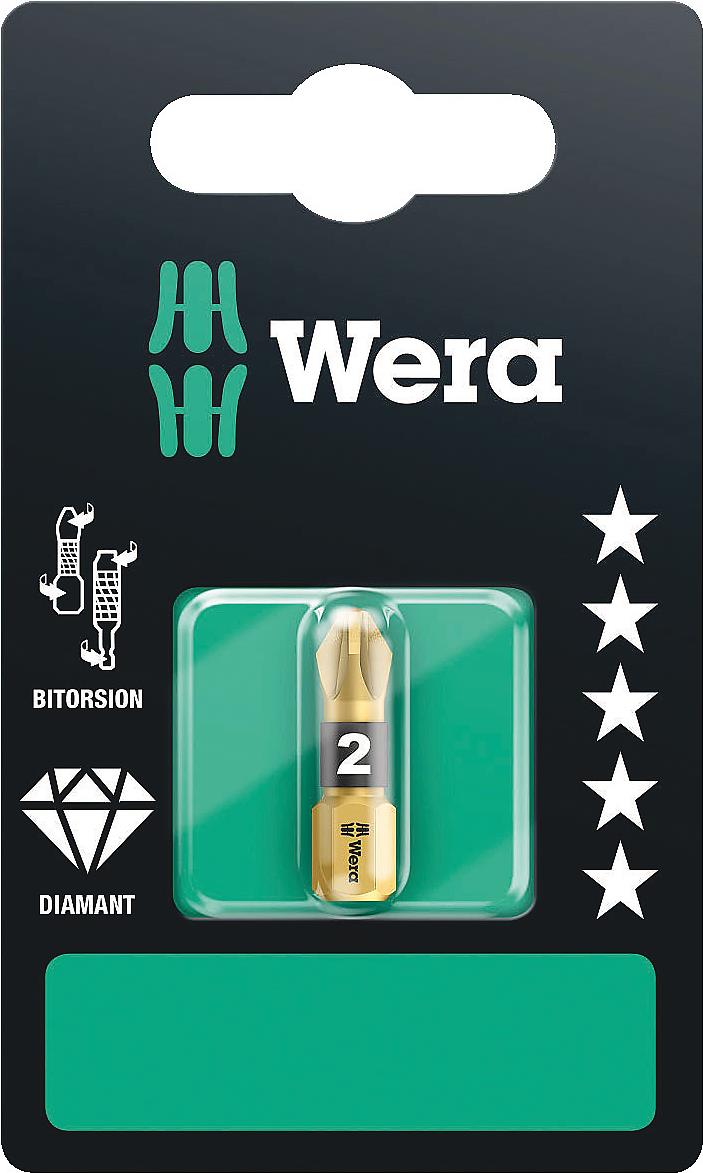 Bits für Pozidriv*-Schrauben mit winzigen Diamantpartikeln auf der Bitspitze. Diese sorgen für sicheren Sitz in der Schraube, reduzieren den benötigten Anpressdruck und reduzieren die Gefahr des Abrutschens. Mit ...