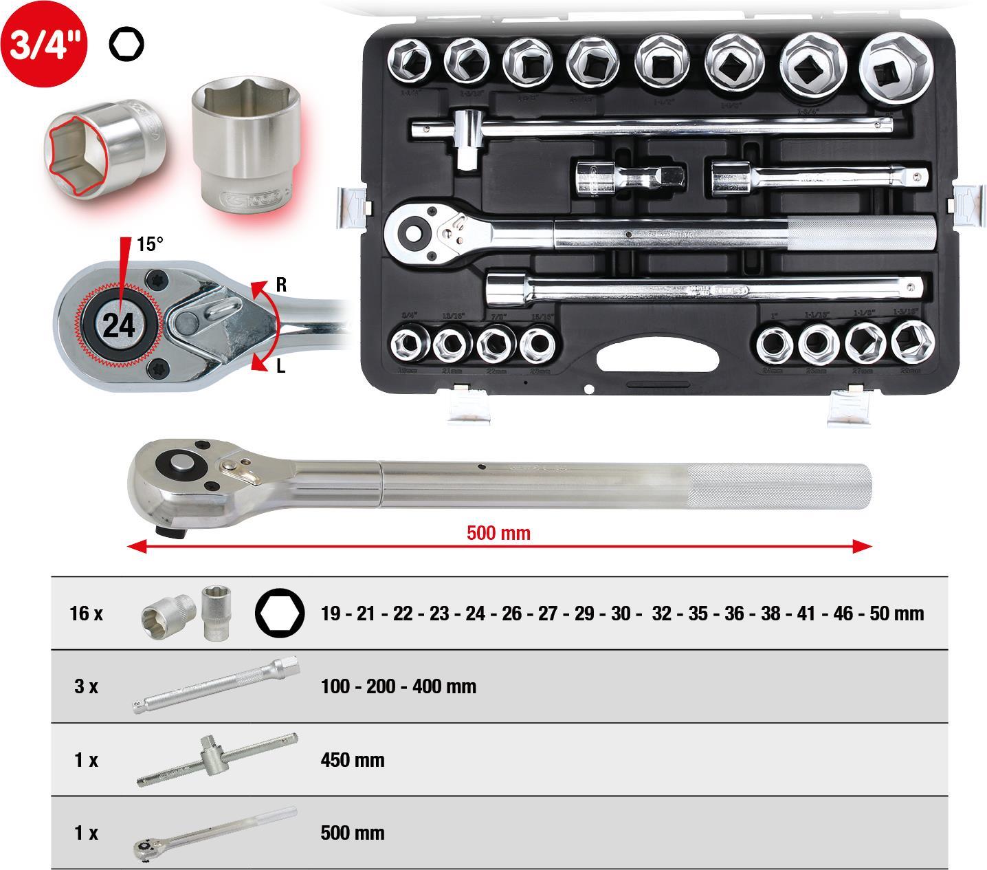 • KS TOOLS 3/4" Steckschlüssel-Satz, 21-tlg. 6-kant (911.0721)