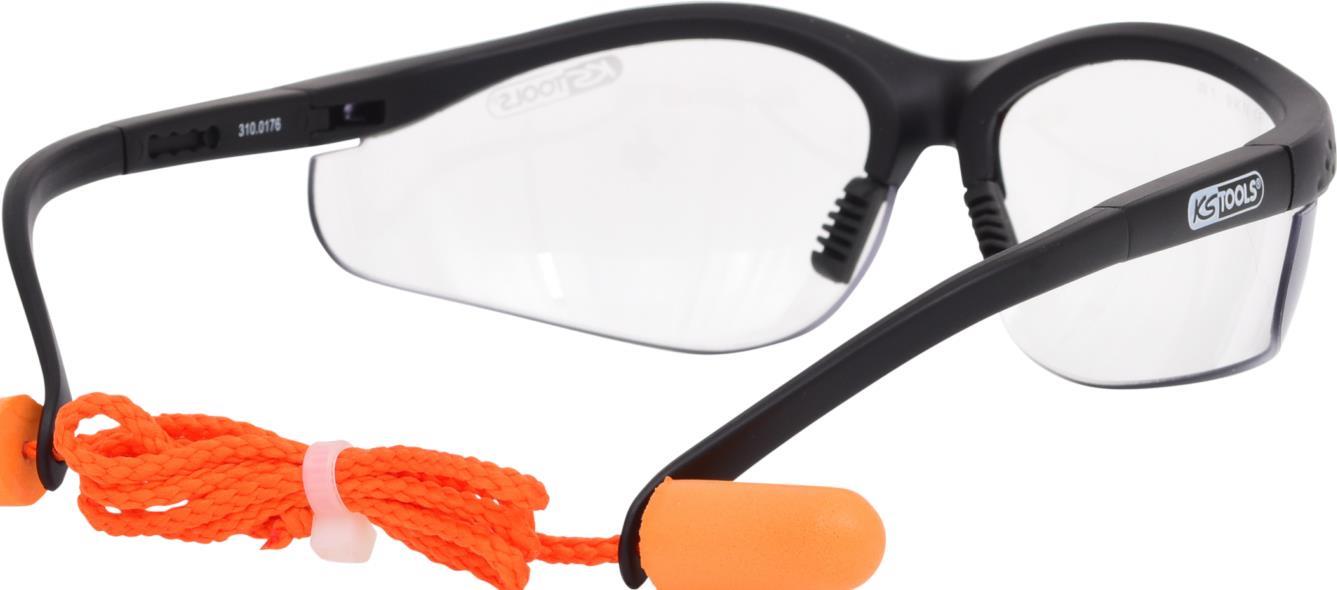 KS TOOLS Schutzbrille-transparent, mit Ohrstöpsel (310.0176)