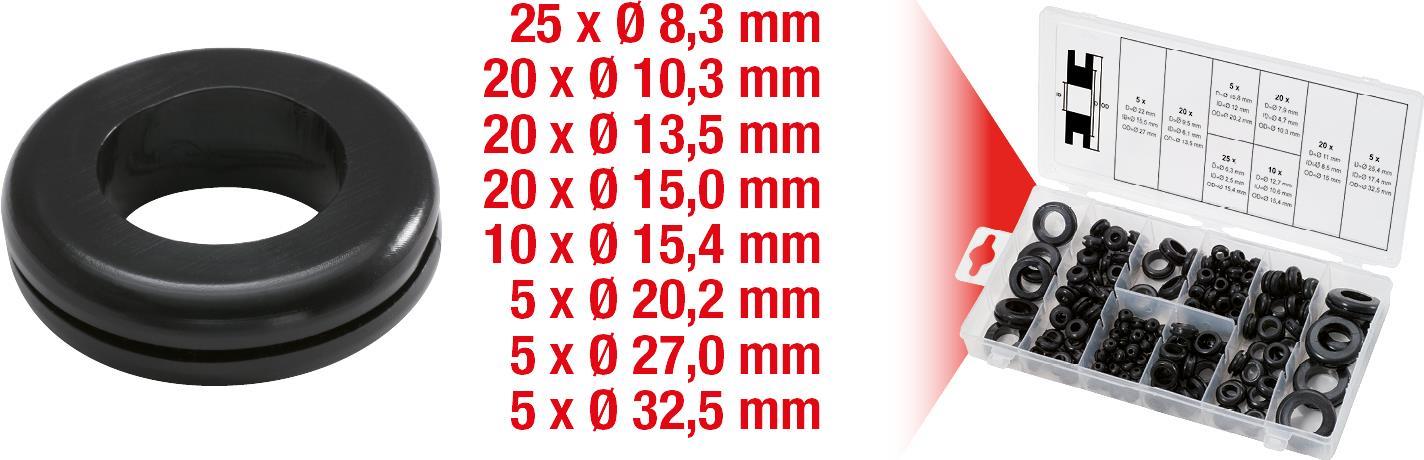 • KS TOOLS Sortiment Gummi-Durchgangstüllen, 110-tlg. (970.0050)