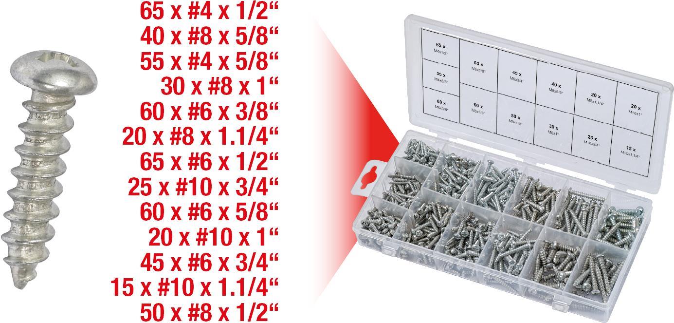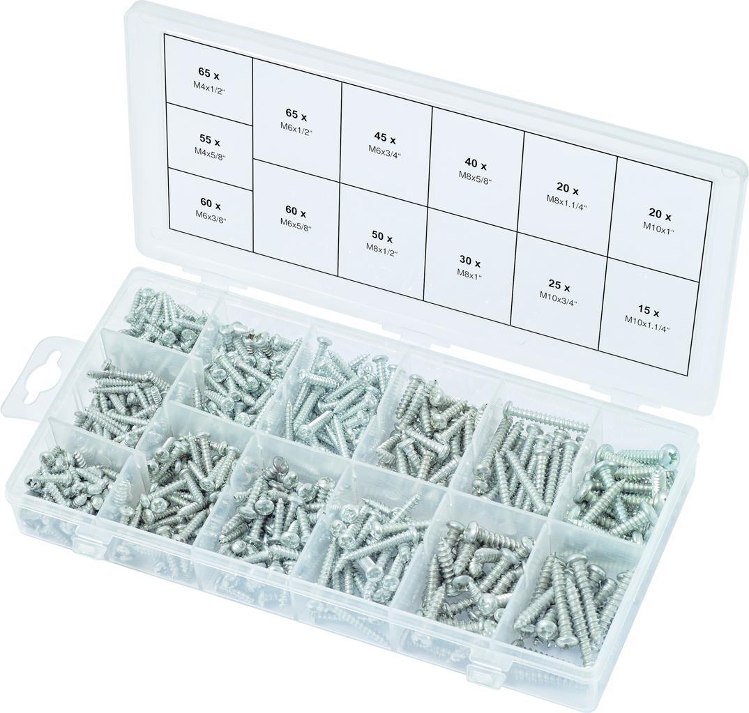 KS TOOLS Sortiment Linsenkopf-Blechtreibschrauben, 550-tlg. (970.0420)
