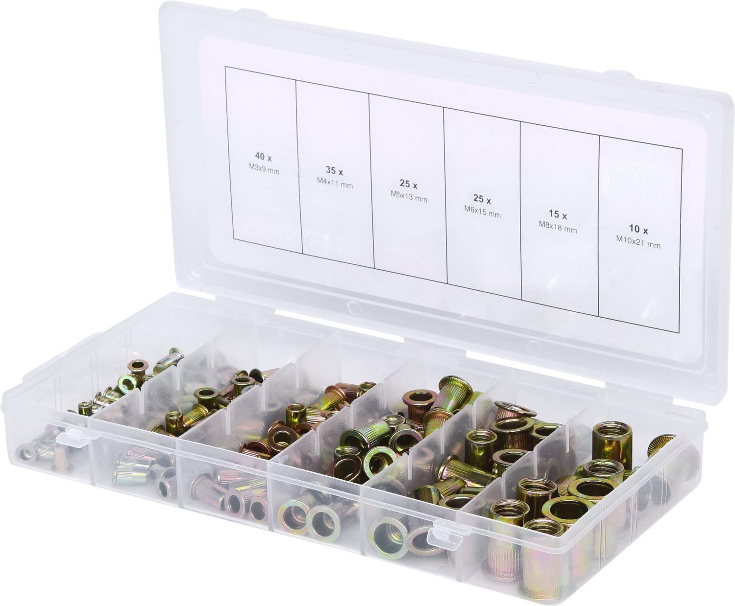 KS TOOLS Sortiment Gewindenieten, Stahl, M3x9mm-M10x21mm, 150-tlg. (970.0610)