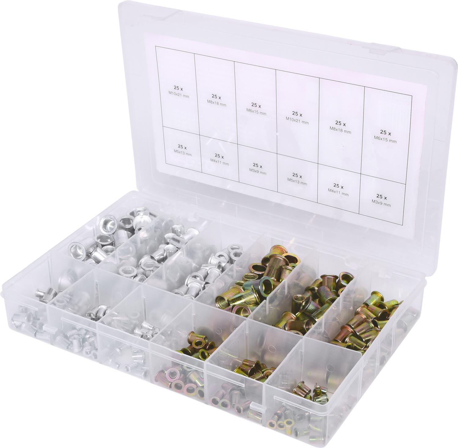 KS TOOLS Sortiment Gewindenieten, Stahl und Aluminium, M3x9mm-M10x21mm, 300-tlg. (970.0630)