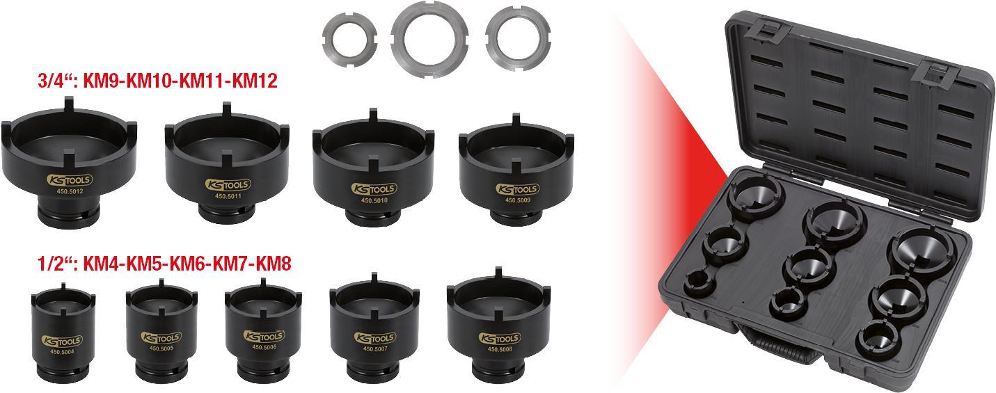KS TOOLS Werkzeuge-Maschinen GmbH Nutmuttern-Schlüssel-Satz, Zapfen aussen liegend, 9-tlg (450.5000)