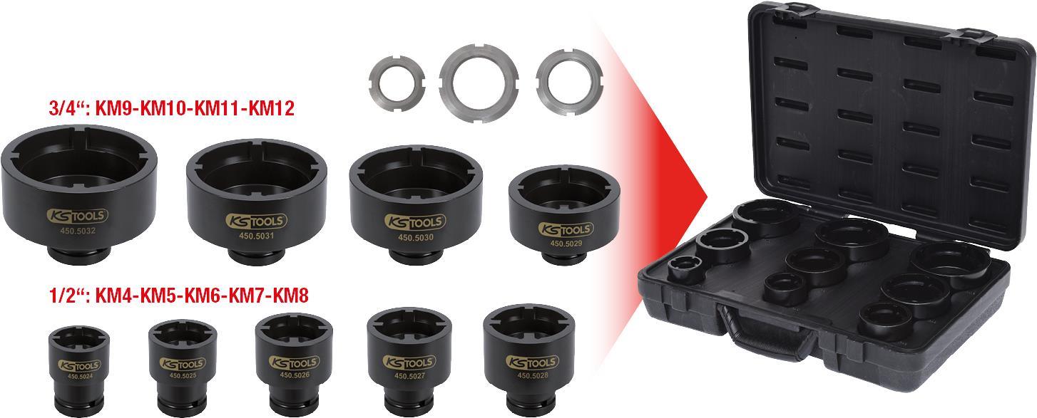 KS TOOLS Werkzeuge-Maschinen GmbH Nutmuttern-Schlüssel-Satz, Zapfen innen liegend, 9-tlg (450.5020)