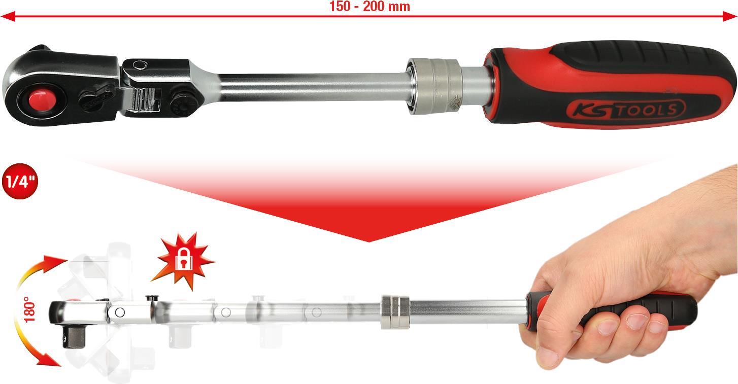 • KS TOOLS Werkzeuge-Maschinen GmbH 1/4" SlimPOWER Teleskop-Gelenk-Umschaltknarre, 72 Zahn (914.1420)