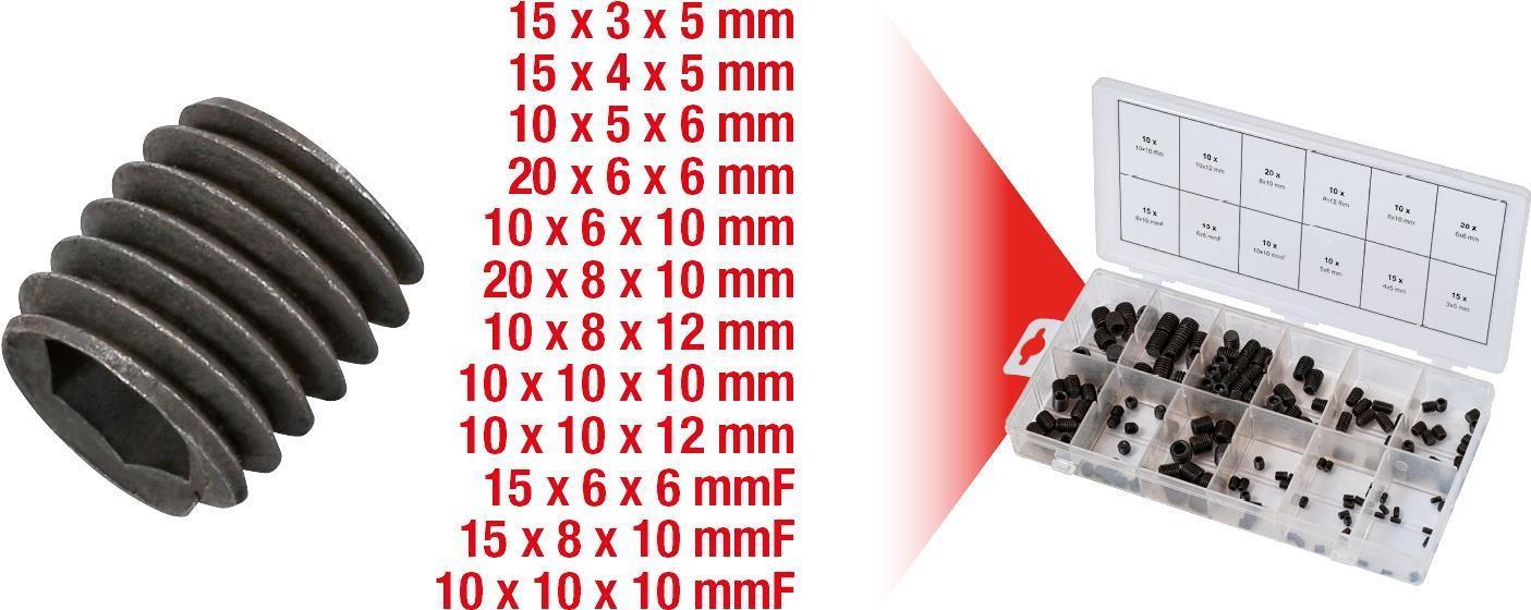 KS TOOLS Werkzeuge-Maschinen GmbH Sortiment Madenschrauben, metrisch, 160-tlg (970.0400)