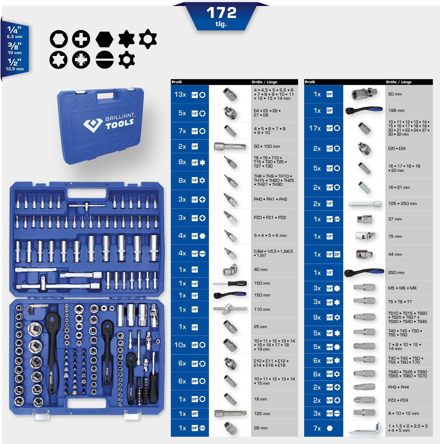 • KS TOOLS Werkzeuge-Maschinen GmbH Steckschlüssel-Satz, 172-tlg, 1/4", 3/8", 1/2 (BT023172)