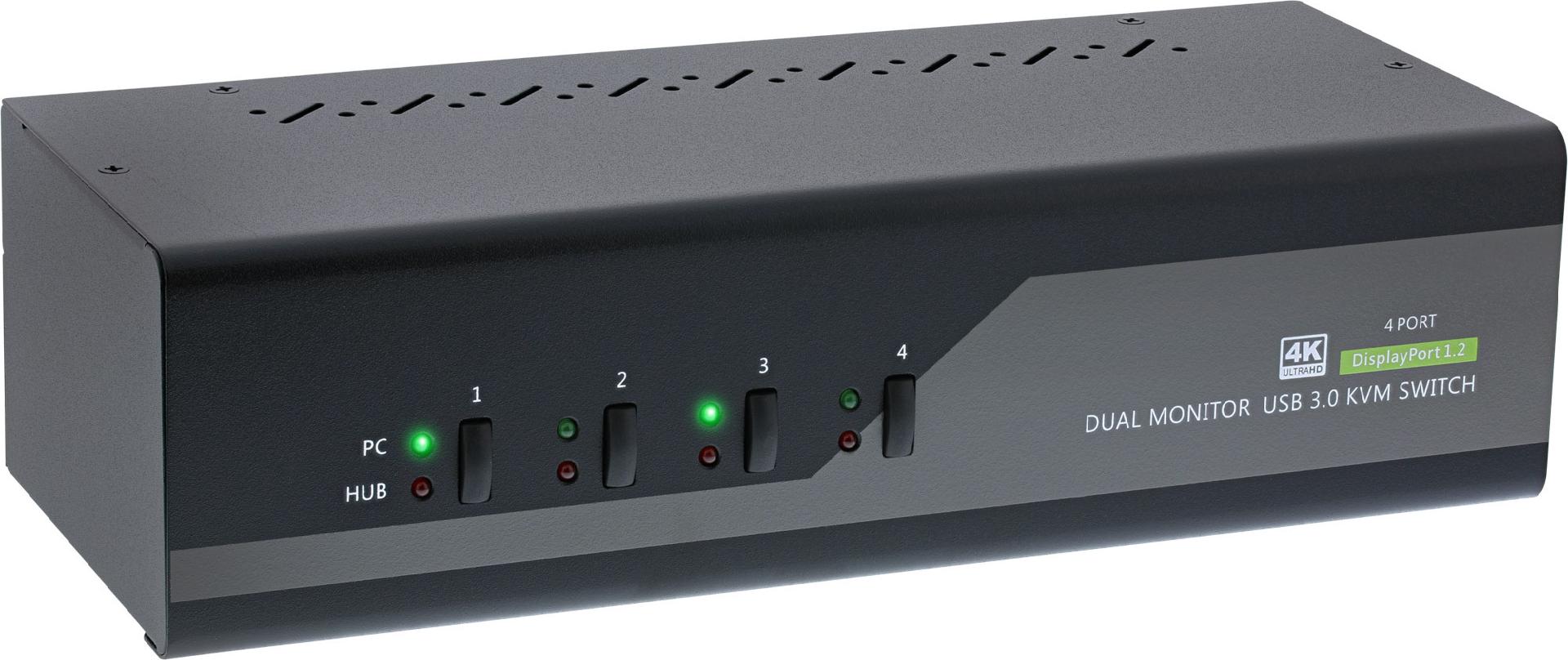 InLine KVM Desktop Switch - 4-fach - Dual-Monitor DP 1.2 - 4K - USB 3.0 - Audio (63654I)