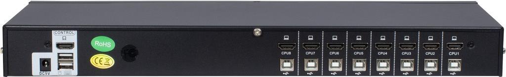 Der KVM AS-9108HA HDMI ist ein professioneller 8-Port KVM-Switch. Er findet vornehmlich in Serverschränken Anwendung, in denen mehrere Server installiert sind, die durch die integrierte Umschaltungsmöglichkeit zentral über den KVM AS-9108HA HDMI mit einer Tastatur, Maus und einem Monitor bedient werden können.Der integrierte Passwortschutz verhindert dabei den Zugriff auf Tastatur und Monitor und sichert Ihre Server zusätzlich gegen unbefugte Bedienung ab.Der Anschluss des KVM erfolgt über die 8 mitgelieferten Anschlusskabel am Computer per USB sowie HDMI.Produkttext[/head]Er findet vornehmlich in Serverschränken Anwendung, in denen mehrere Server installiert sind, die durch die integrierte Umschaltungsmöglichkeit zentral über den KVM AS-9108HA HDMI mit einer Tastatur, Maus und einem Monitor bedient werden können.Der integrierte Passwortschutz verhindert dabei den Zugriff auf Tastatur und Monitor und sichert Ihre Server zusätzlich gegen unbefugte Bedienung ab.Der Anschluss des KVM erfolgt über die 8 mitgelieferten Anschlusskabel am Computer per USB sowie HDMI.[head]Hauptmerkmale