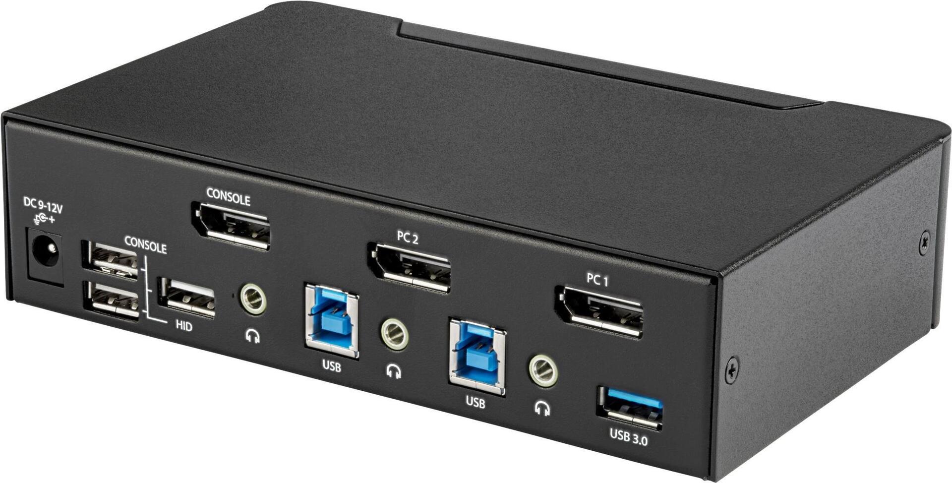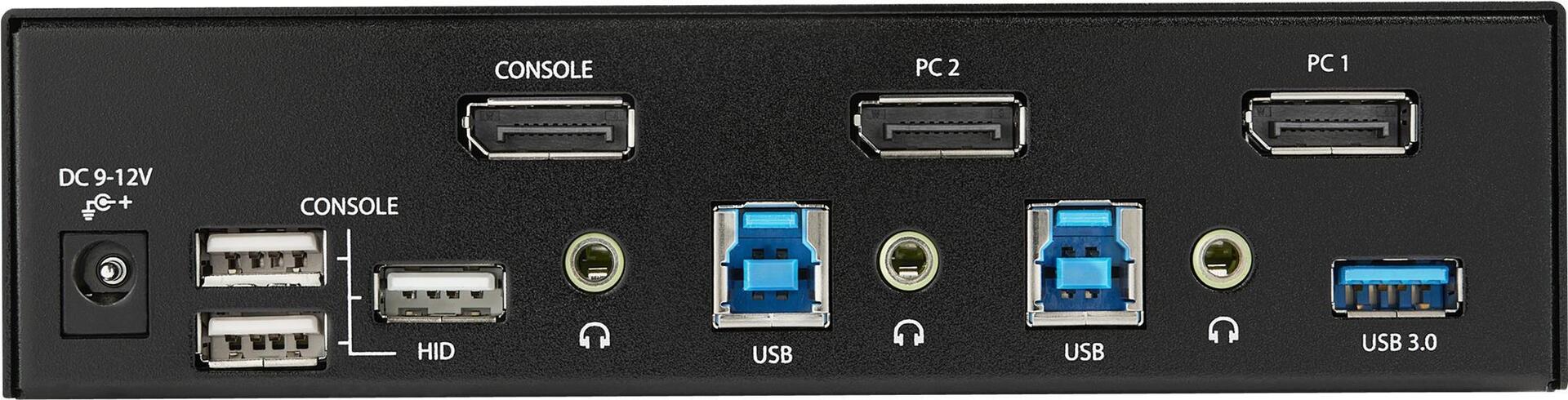 | Schnittstellen | 1 x DisplayPort-Ausgang 2 x DisplayPort-Eingang 1 x Audioausgang mini-jack 2 x Audioeingang mini-jack 4 x Tastatur (USB) / Maus (USB) Type A 2 x USB 3.0 Type B 2 x USB 3.0 Type A |