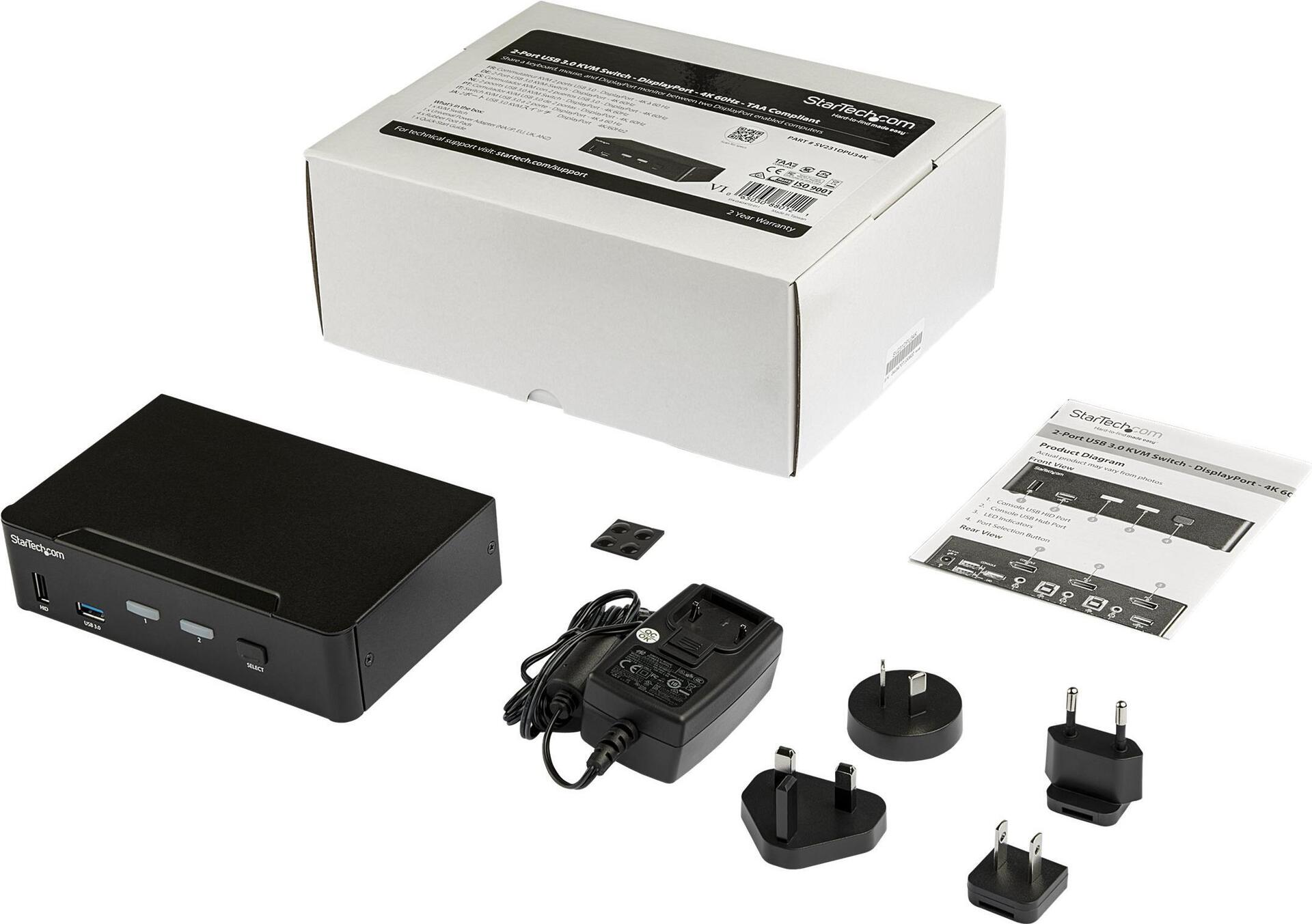 | Produktbeschreibung | StarTech.com 2-Port DisplayPort KVM Switch - 4K 60Hz - TAA Compliant - KVM-/Audio-/USB-Switch - 2 Anschlüsse |