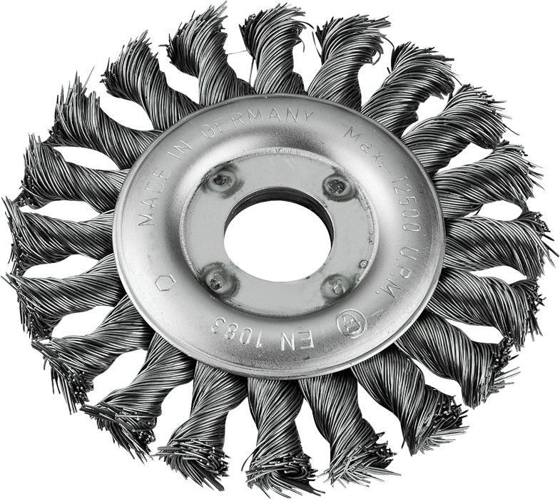 Scheibenbürste, HSS Stahldraht, gezopft, zum Entrosten, Entfernen von Beschichtungen, Farbe, starkem Rost und Unterbodenschutz, Entzundern, Entgraten und ...