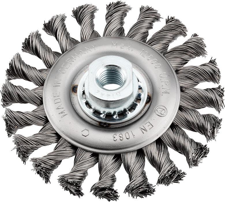 Scheibenbürste, HSS Stahldraht, gezopft, zum Entrosten, Entfernen von Beschichtungen, Farbe, starkem Rost und Unterbodenschutz, Entzundern, ...