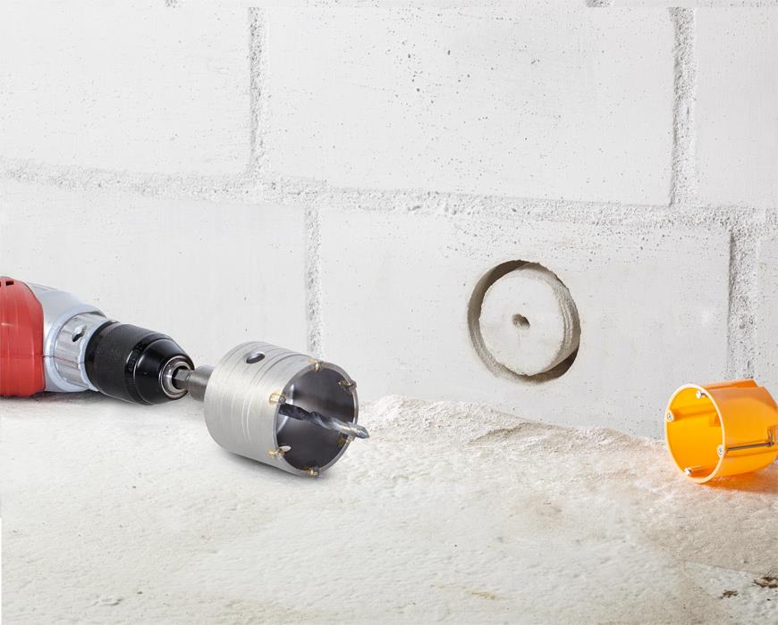 Hohlbohrkrone, hartmetallbestückt, schlagbohrfest, spezial gehärtet, spezial verlötete hitzebeständige Hartmetallplatten, zum Einsatz in Mauerwerk, Naturstein, Kunststein, Beton, Marmor und Ziegel, zum Setzen von ...
