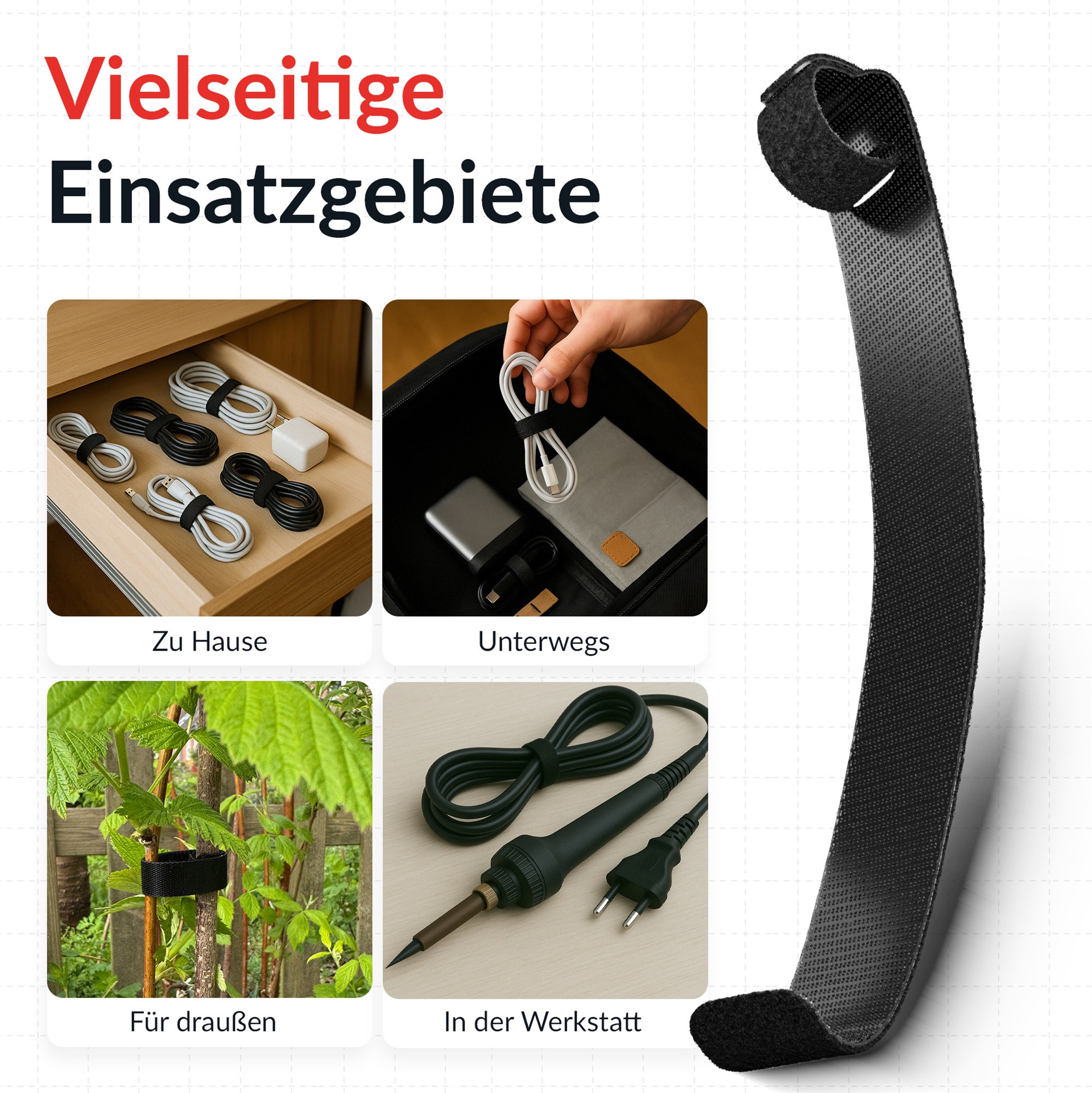 • Label-The-Cable LTC PRO Basic Straps, Klett Kabelbinder, schwarz, 50er Pack (PRO 1110)