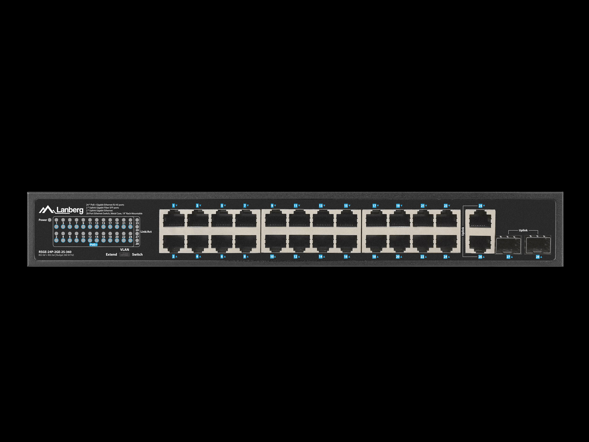 Lanberg Switch 24X 1GB DSP+/2X GB 2X SFP Rack 19" Gigabit Et (RSGE-24P-2GE-2S-360)