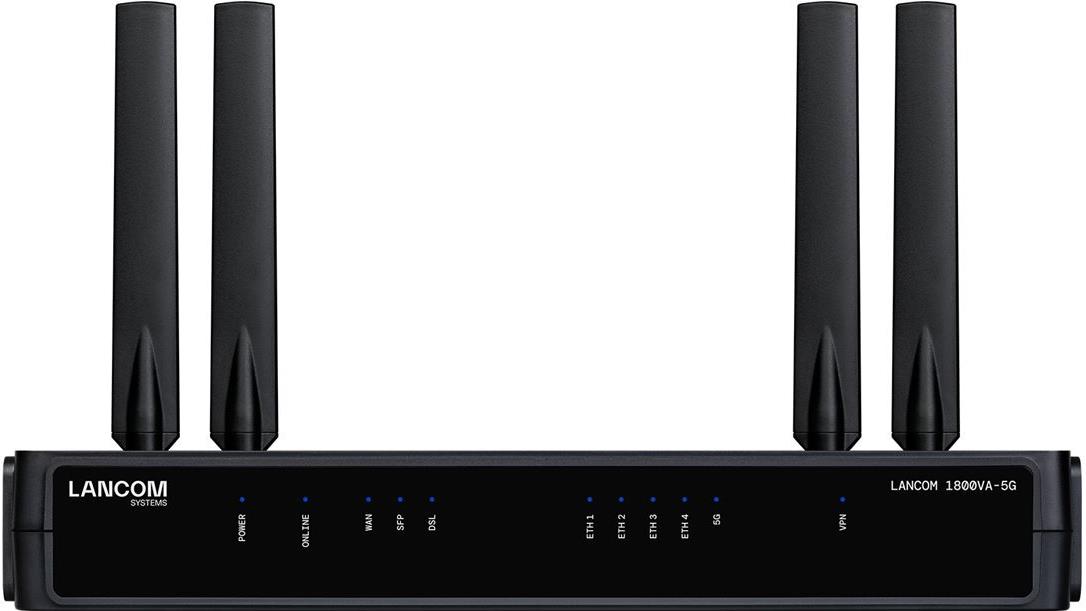 Der LANCOM 1800VA-5G bietet robuste Netzwerkfunktionen für verschiedene Anwendungen und integriert sowohl VDSL- als auch 5G-Technologien. Er verfügt über ein kompaktes Desktop-Design und integrierte Geräte wie einen Systemlüfter und ein 5G-Modem für nahtlose Konnektivität. Die Unterstützung mehrerer VPN-Tunnel und -Verbindungen gewährleistet eine sichere und effiziente Datenübertragung, sodass er sich für Unternehmen eignet, die eine zuverlässige Netzwerkleistung benötigen. Der LANCOM 1800VA-5G wurde für vielfältige Umgebungen entwickelt, arbeitet in einem breiten Temperaturbereich und unterstützt hohe Luftfeuchtigkeitswerte, wodurch er sich perfekt für anspruchsvolle Umgebungen eignet. Seine externen und internen Antennenoptionen sowie mehrere WAN- und LAN-Schnittstellen verbessern die Vielseitigkeit und die Konnektivitätsoptionen. Dieses Produkt wurde entwickelt, um mit den modernen Netzwerkanforderungen Schritt zu halten und gleichzeitig die Datenintegrität zu gewährleisten und ein effizientes Netzwerkmanagement zu fördern.