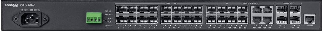 Der LANCOM IGS-3128XF ist ein vielseitiger Switch, der für leistungsstarke Netzwerke in kompakter Bauform entwickelt wurde. Dank seiner Rack-montierbaren Bauweise und einer Höhe von 1 HE fügt er sich nahtlos in bestehende Netzwerkumgebungen ein und bietet eine platzsparende Lösung für Konnektivitätsanforderungen. Das Gerät verfügt über erweiterte Layer-3-Switching-Funktionen, die eine effiziente Datenverarbeitung und -weiterleitung gewährleisten – unerlässlich für komplexe Netzwerkkonfigurationen. Darüber hinaus ist der LANCOM IGS-3128XF verwaltbar, sodass Netzwerkadministratoren den Switch einfach überwachen und konfigurieren können, was zu einer optimierten Netzwerkleistung und -zuverlässigkeit führt.