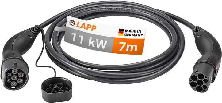 Lapp 5555934005. Kabelfarbe: Schwarz, Anschluss 1: Typ 2, Anschluss 2: Typ 2. Maximale Betriebsleistung (dreiphasig): 11 kW, Maximaler Betriebsstrom (dreiphasig): 20 A, Arbeitsspannung: 440 V. Kabellänge: 7 m. Menge pro Packung: 1 Stück(e) (61782)