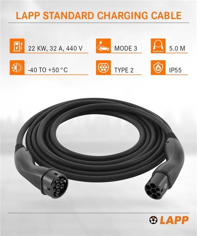 • LAPP MOBILITY Ladekabel Typ 2, bis zu 22 kW, 5 m, schwarz (61781)