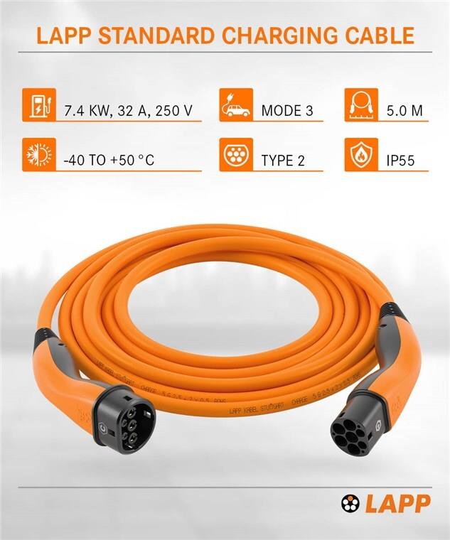 LAPP MOBILITY Ladekabel Typ 2, bis zu 7,4 kW, 5 m, Orange (61786)