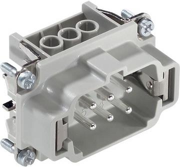 Stifteinsatz mit Drahtschutz Serie H-BE 6Die Einsatzmöglichkeiten bei höheren Spannungen und Stromstärken sowie die hohe Zuverlässigkeit zeichnet die bewährte H-BE Serie aus.Technische Daten: Anschluss (Bauelemente): SchraubenBemessungs-Stoßspannung: 6 kVBemessungsspannung: IEC: 500 VUL: 600 VCSA: 600 VBemessungsstrom: IEC: 16 AUL: 16 ACSA: 16 AGesamtpolzahl: 6 + PELeiterquerschnitt (max.): 2.5 mm²Leiterquerschnitt (min.): 0.5 mm²Polzahl: 6Serie (Steckverbinder EPIC): EPIC® H-B 6Steckverbinder-Besonderheiten: Mit DrahtschutzSteckverbinder-Typ (Kategorisierung): StifteinsatzVoreilender Kontakt (PE): Ja