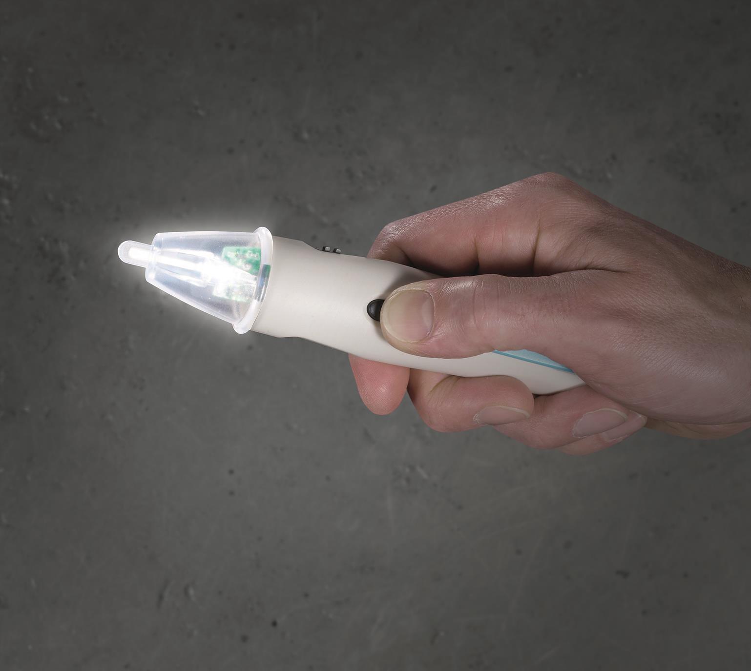 Laserliner 083.008A. Betriebsprinzip: Kontaktfrei, Überspannungskategorie: CAT III, AC Spannungsrange: 5 - 1000 V. Kompatible Batteriegrößen: AAA, Kompatible Batterietechnologien: Alkali, Batteriespannung: 1,5 V. Breite: 154 mm, Tiefe: 28 mm, Höhe: 32 mm (083.008A)