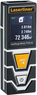 Laserliner LaserRange-Master T4 Pro. Typ: Laser-Distanzmessgerät, Maximaler Messabstand: 40 m, Einheiten Abstandsmessung: m. Akku-/Batterietyp: AAA, Automatische Abschaltung nach: 8 min. Produktfarbe: Schwarz, Orange, Weiß, Display-Typ: Digital, Bildschirmtechnologie: LCD. Breite: 100 mm, Tiefe: 35 mm, Höhe: 23 mm (080.850A)