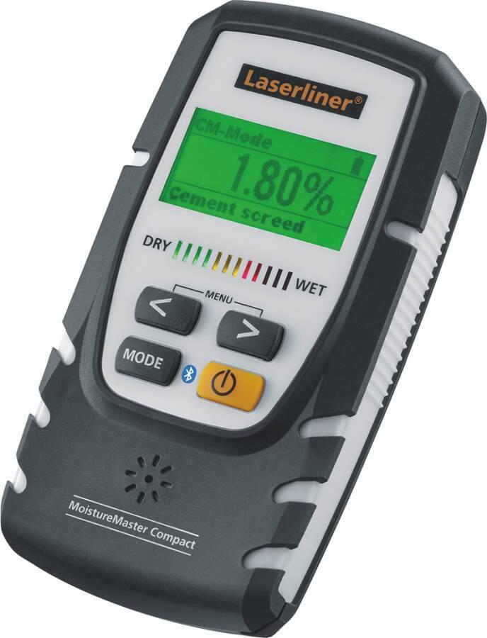 Laserliner MoistureMaster Compact Plus. Beste Verwendung: Beton, Holz, Anzeige: Digital, Produktfarbe: Grau. Akku-/Batterietyp: 6LR61. Breite: 81 mm, Tiefe: 36 mm, Höhe: 154 mm (082.334A)
