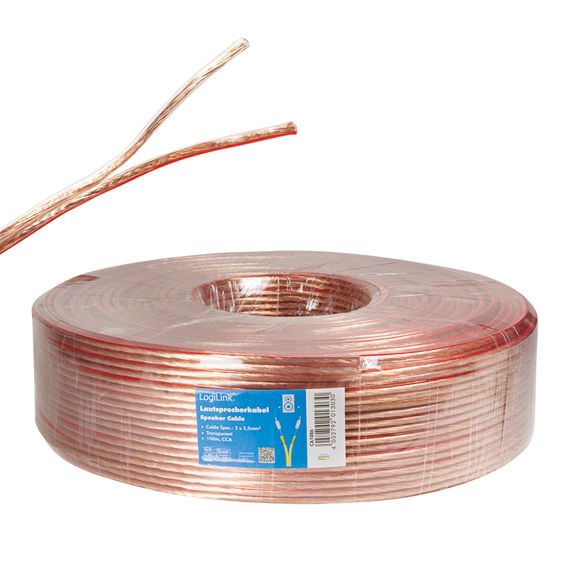 Logilink - Lautsprecherkabel - 2.5 mm² - 100 m - durchsichtig (CA1086)